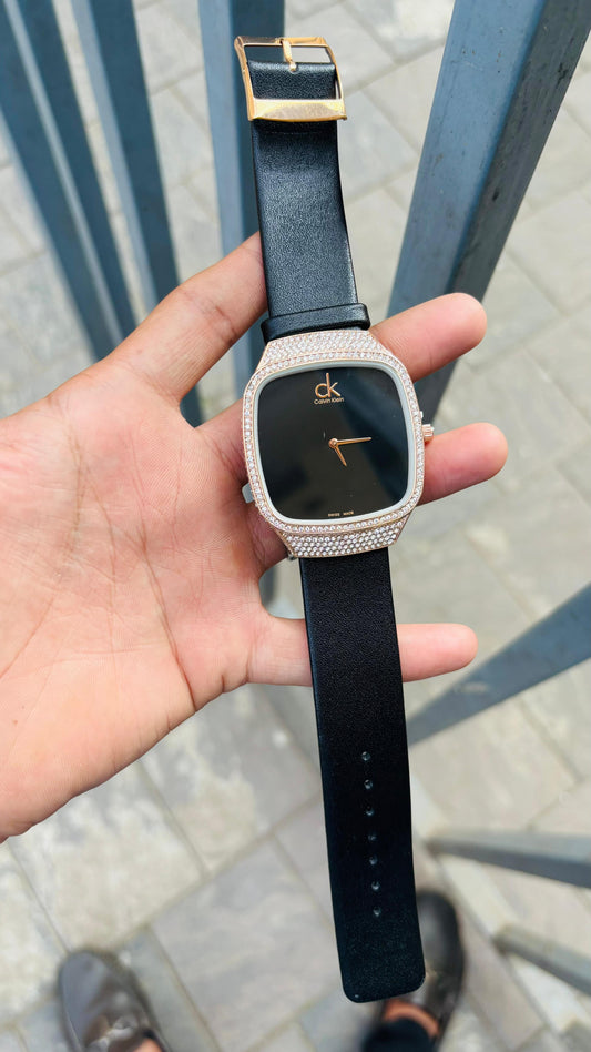 Calvin Klein Rose Gold Diamond Dial Leather Belt For Men's Watch