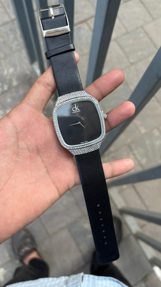 Calvin Klein Silver Diamond Dial Leather Belt Men's Watch