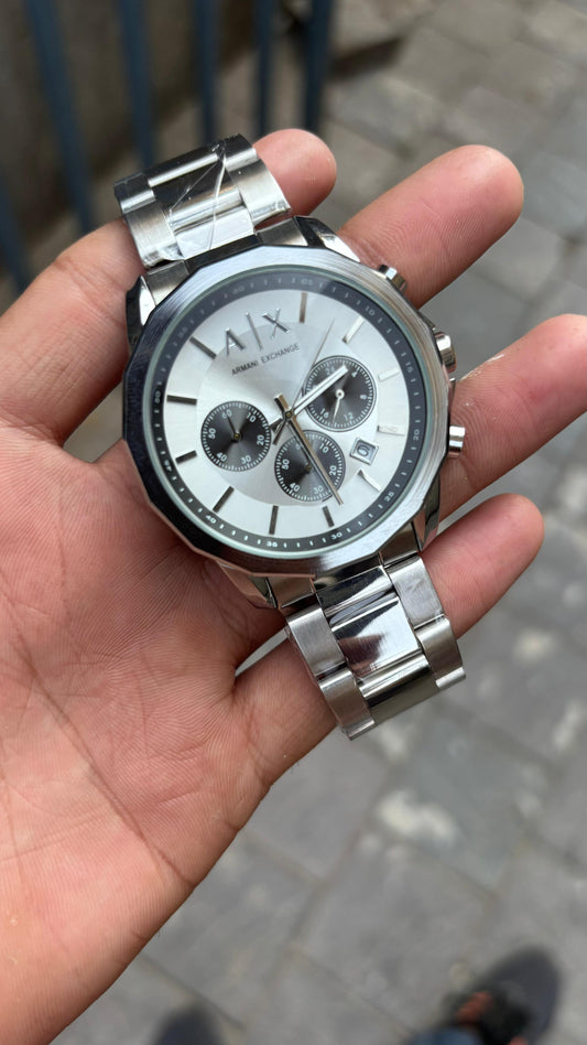 Ar-mani Exchange White Dial Chronograph Metal Belt Men's Watch