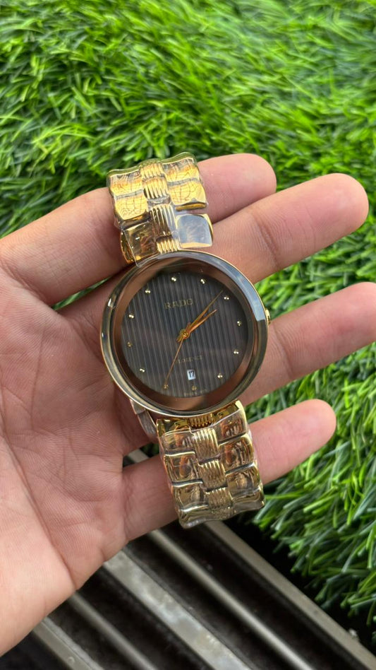 Rado Diastar Gold Dial Chronograph Steel High Quality Watch For Men's