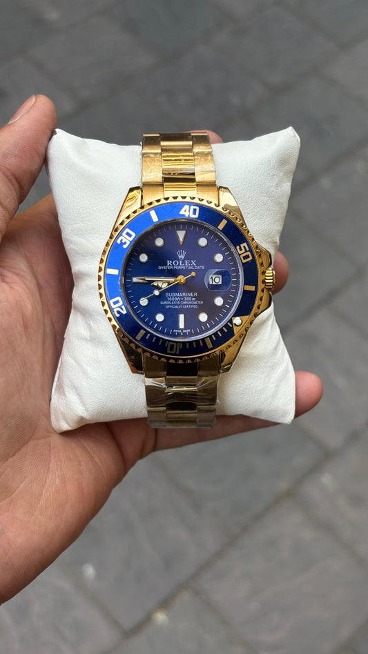 Rolex Submariner Quartz Gold Blue Dial Watch For Men's