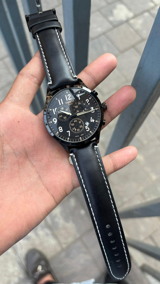 Tissot Black Dial Chronograph Leather Belt Watch For Men's