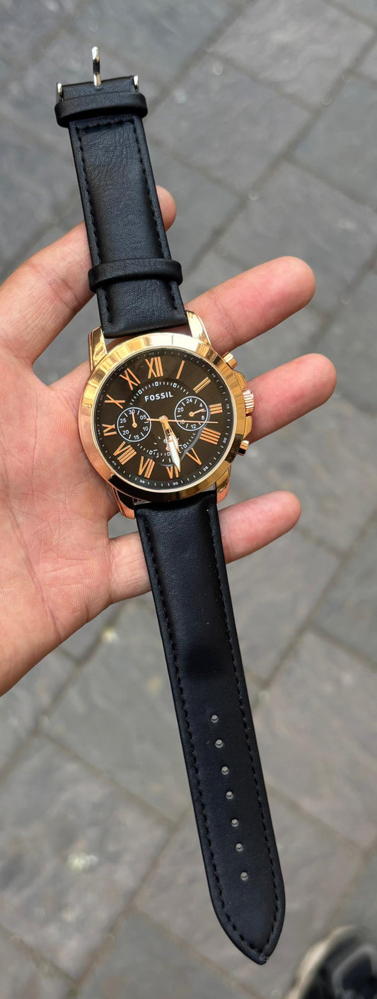 Fossil Black Rose Gold Dial All Chronograph Working Men's Watch