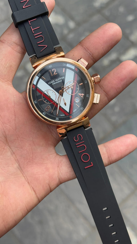 L0uis Vuitt0n Chronograph Black Dial Silicone Belt Men's Watch