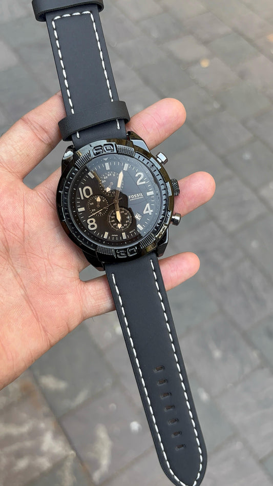 Fossil Black Dial Chronograph Leather Belt Watch For Men's
