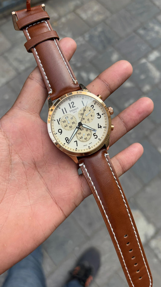 Tissot Gold Dial Chronograph Leather Belt Men's Watch