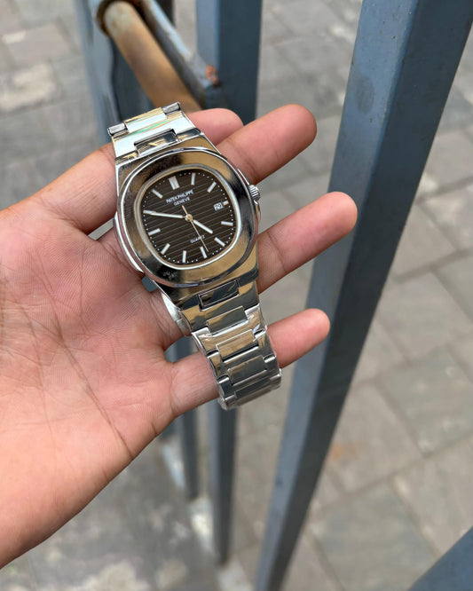 Patek Philippe Black Dial Silver Metal Belt Mens Watch