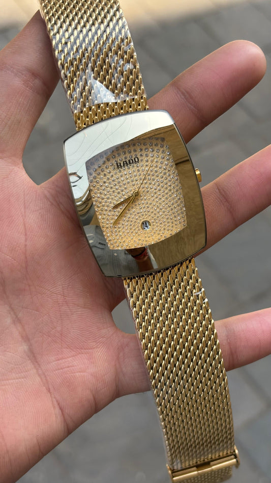 Rado Swiss Time Gold Square Dial Mens Analog Wrist Watch