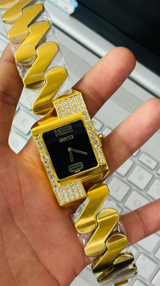 Gucc! Chemin Des Tourelles Gold Dial Watch For Men's