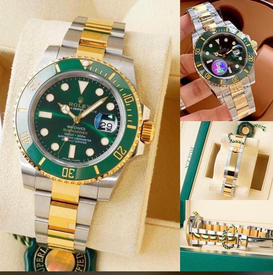 Rol.ex Automatic Golden And Green Dial Analog Chain Metal Round Men's Watch