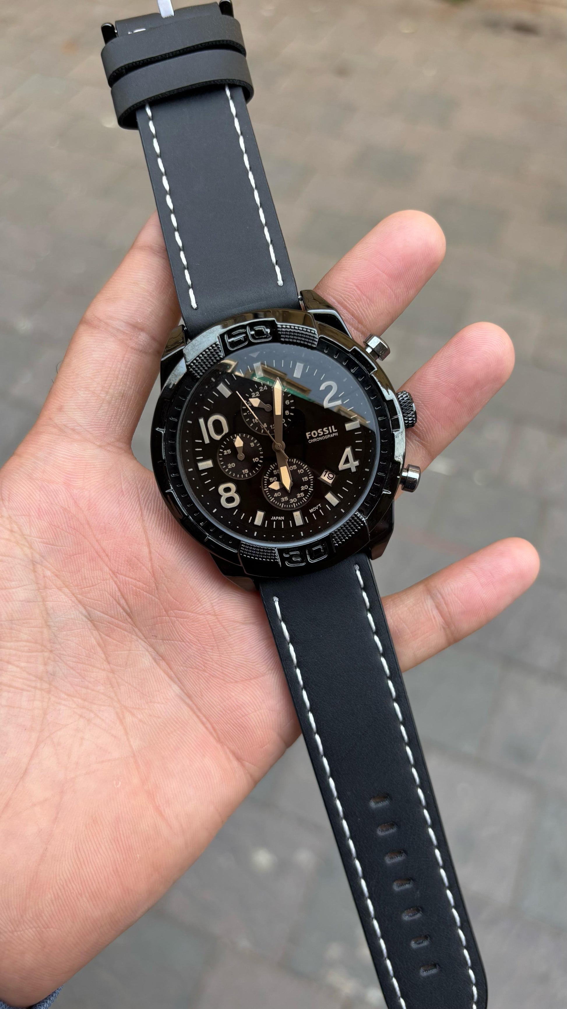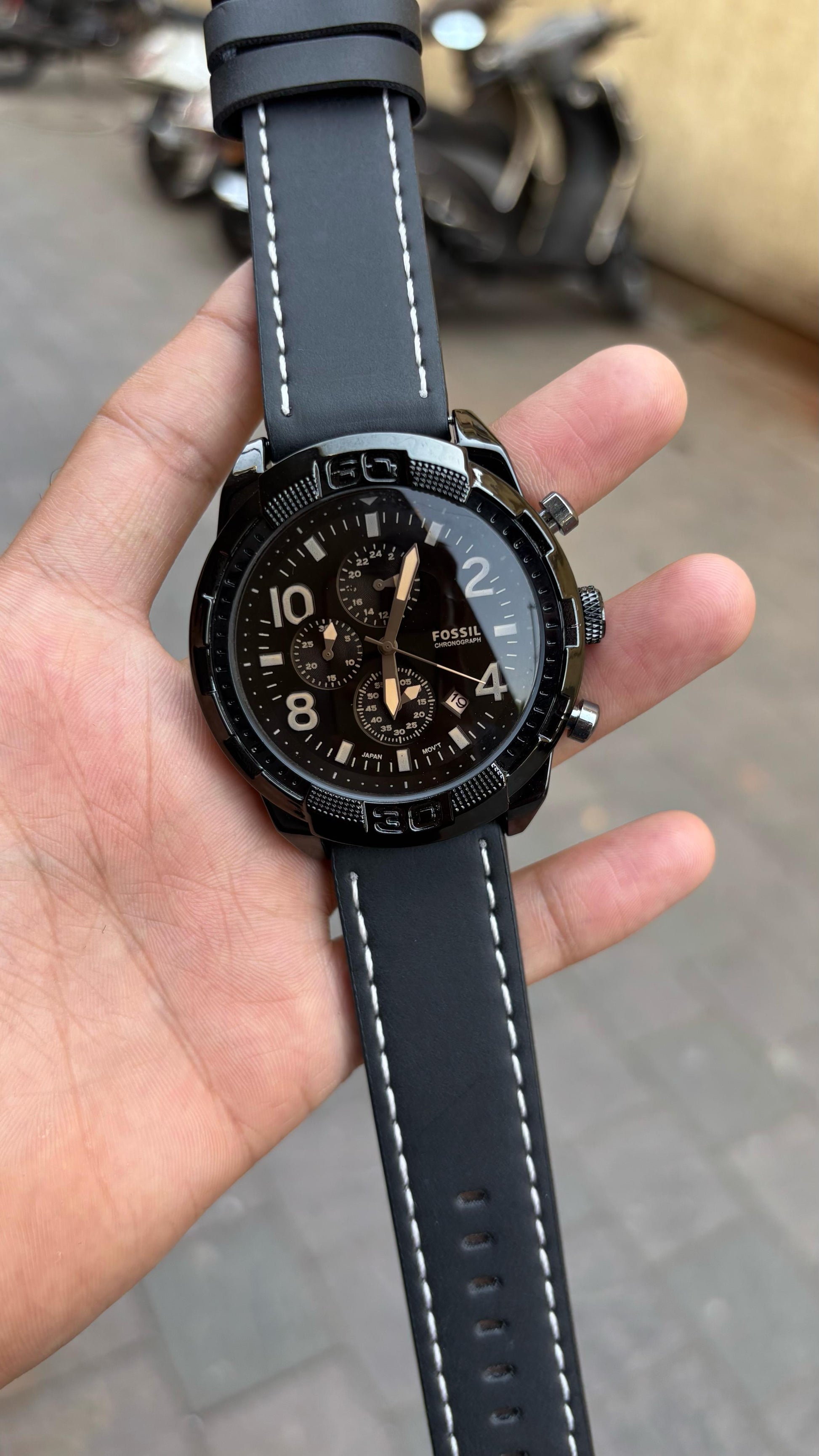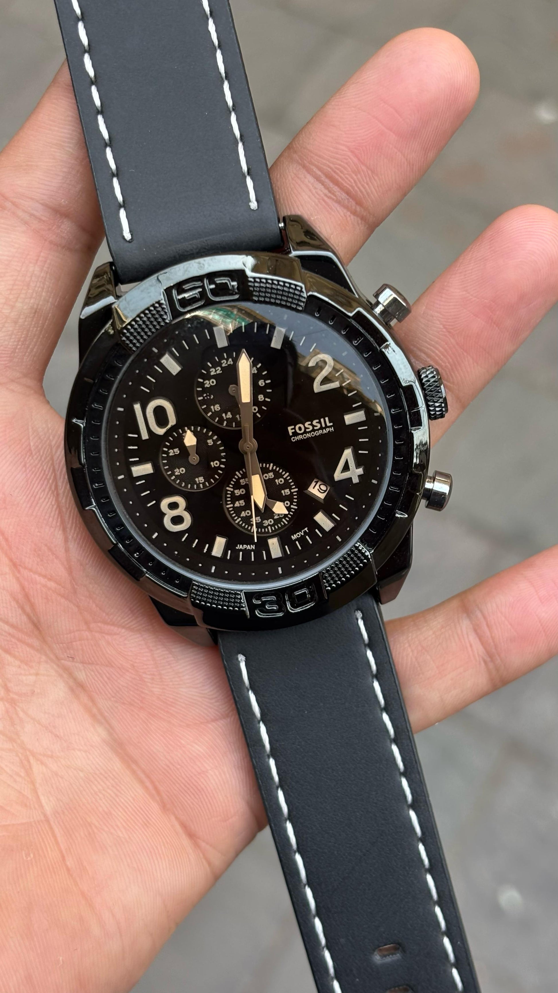 Fossil Black Dial Chronograph Leather Belt Watch For Men's