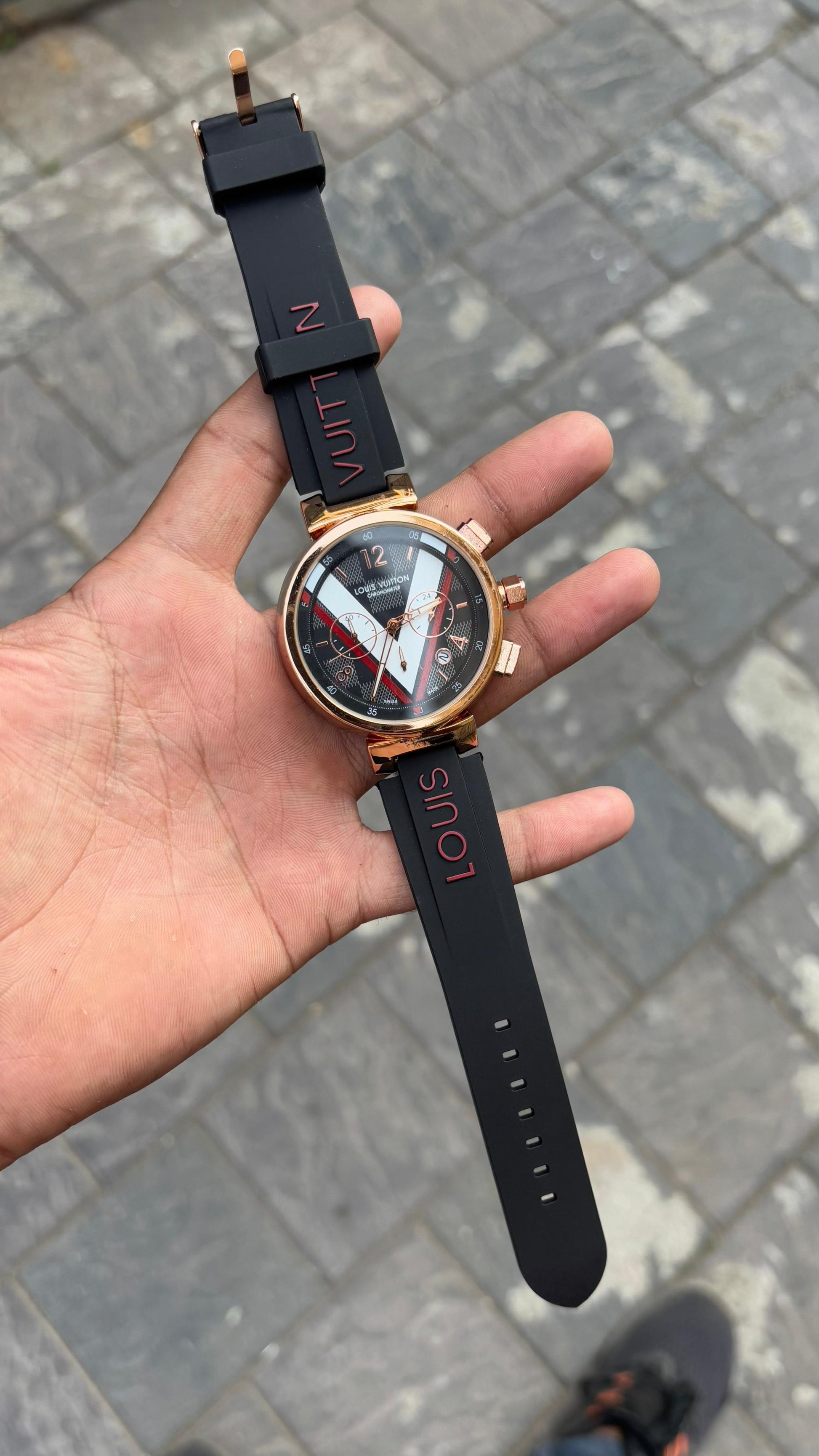 L0uis Vuitt0n Chronograph Black Dial Silicone Belt Men's Watch