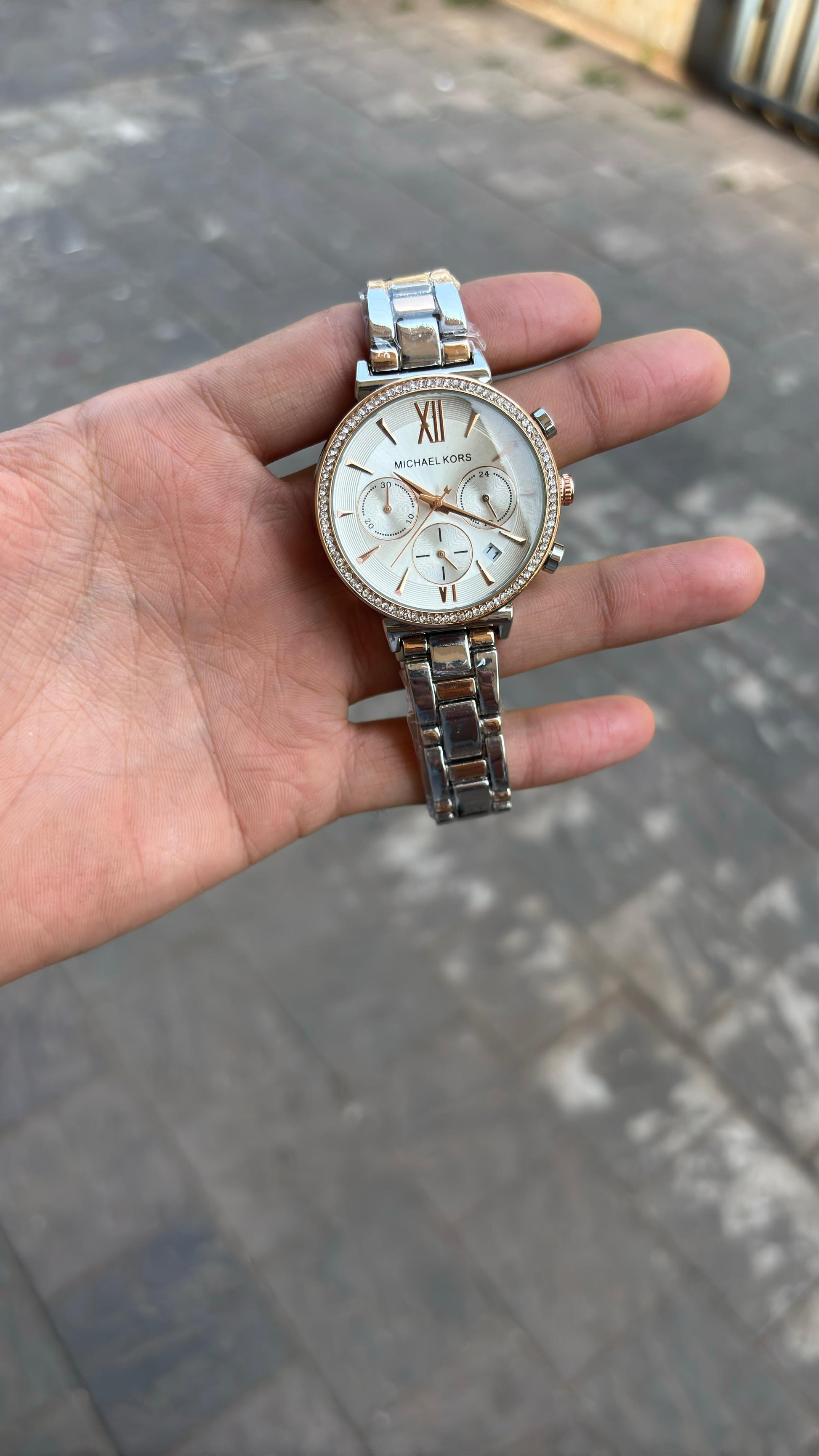 Michael kors Chronograph White Dial Metal Belt Women's Watch