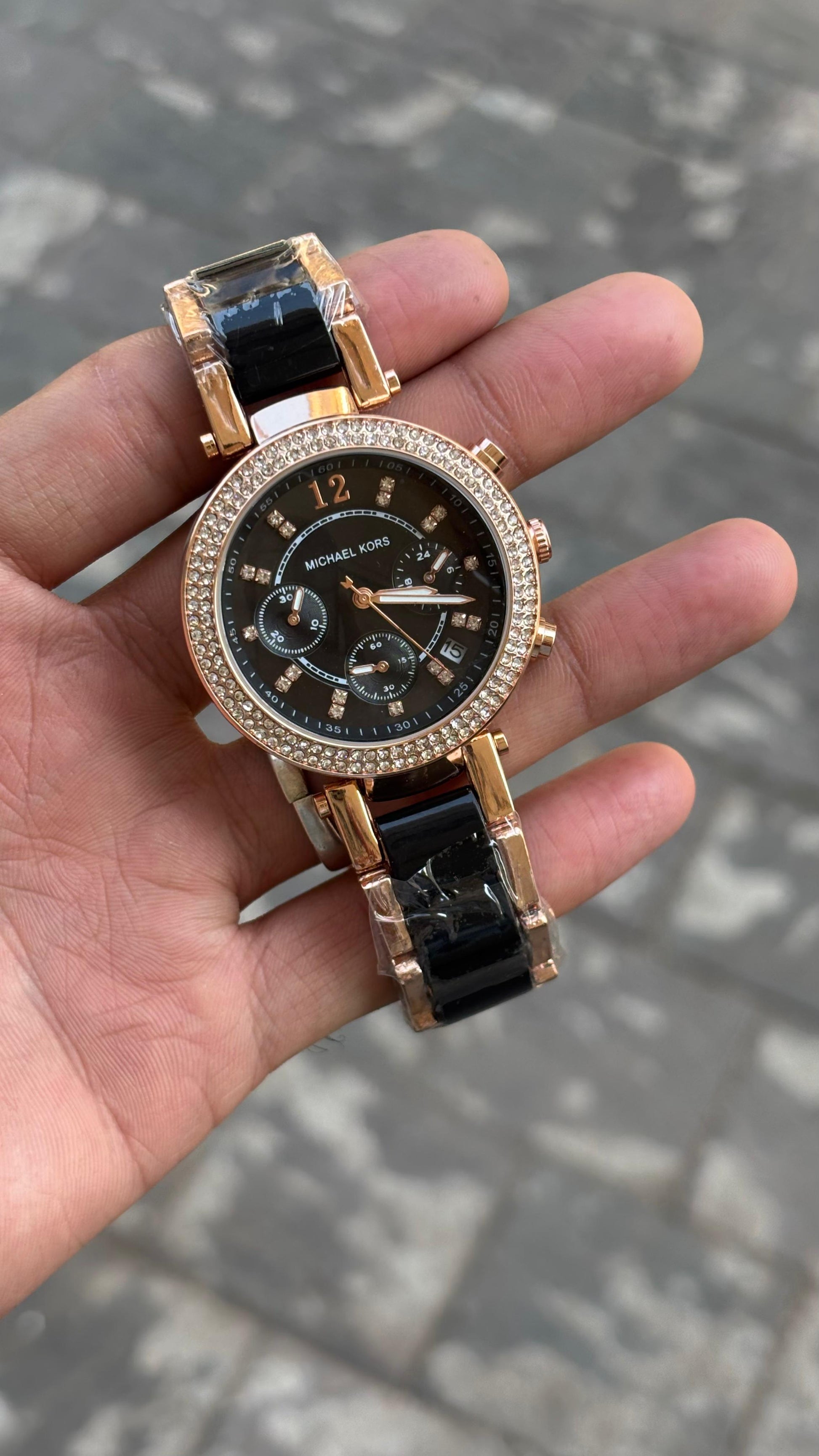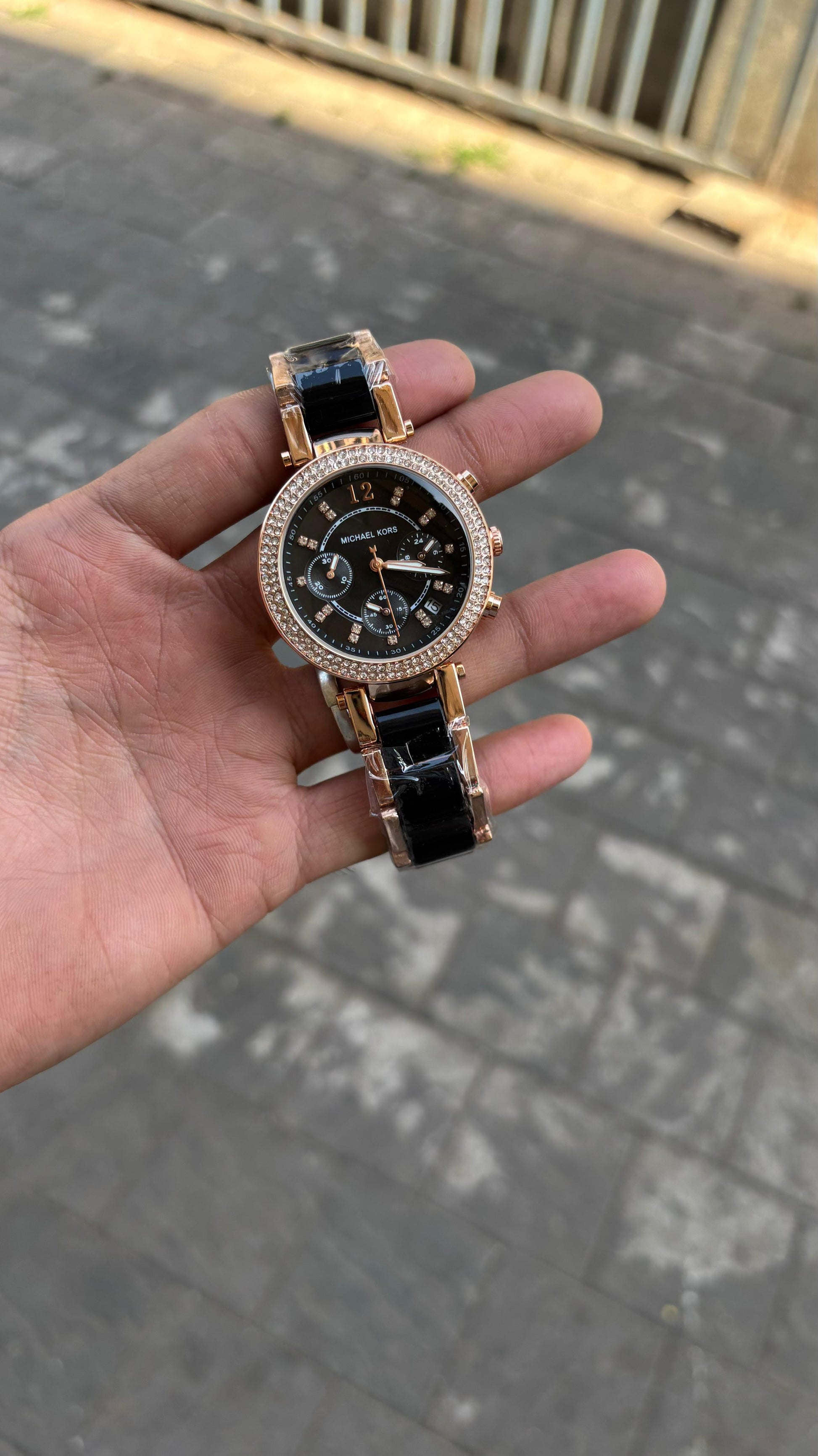 Michael kors New Black Dial Diamond Metal Belt Watch For Women's