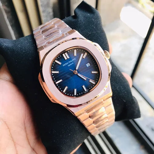 Patek Philippe Blue Rose Gold Dial Metal Belt Men's Watch