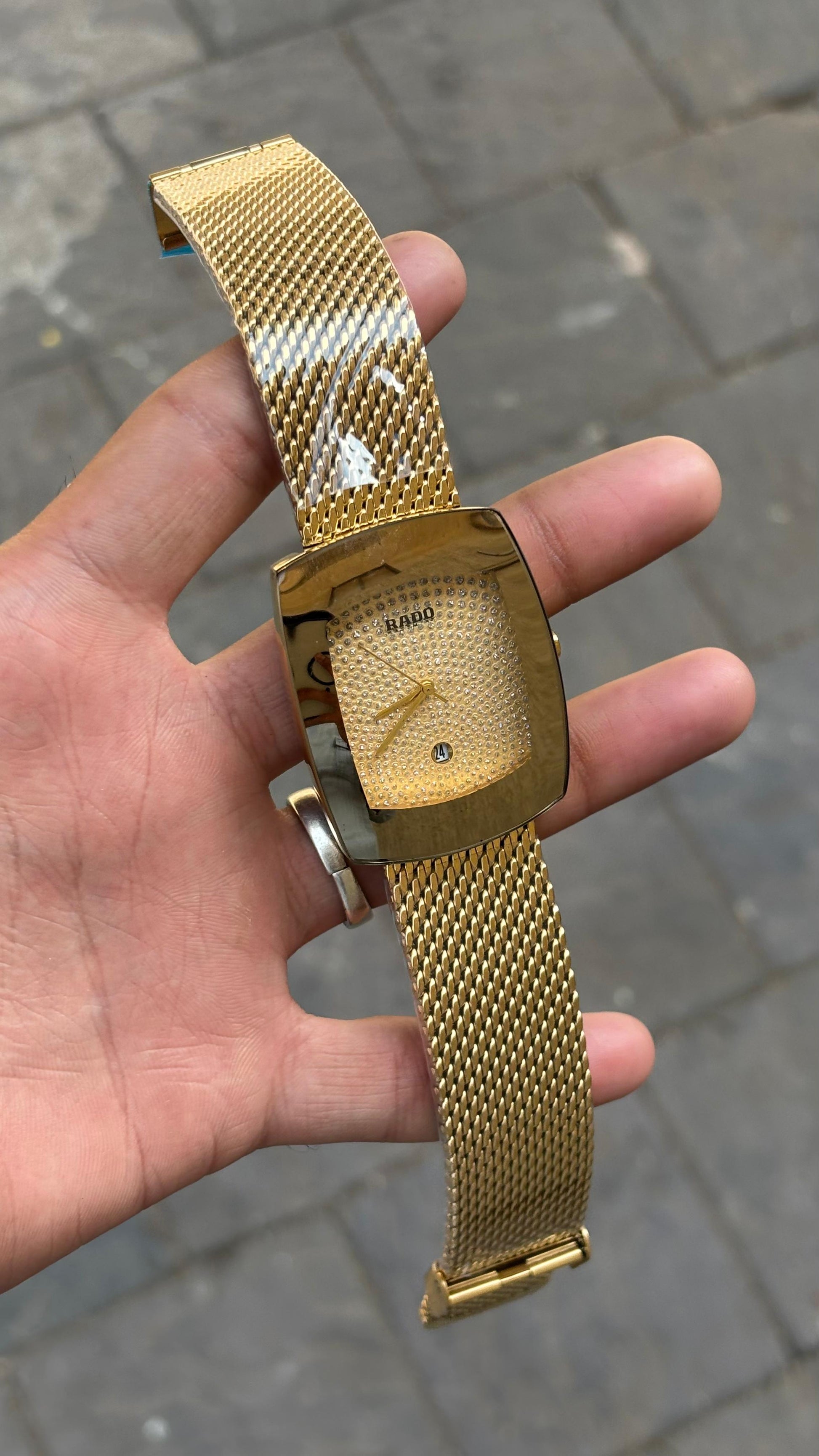 Rado Swiss Time Gold Square Dial Mens Analog Wrist Watch