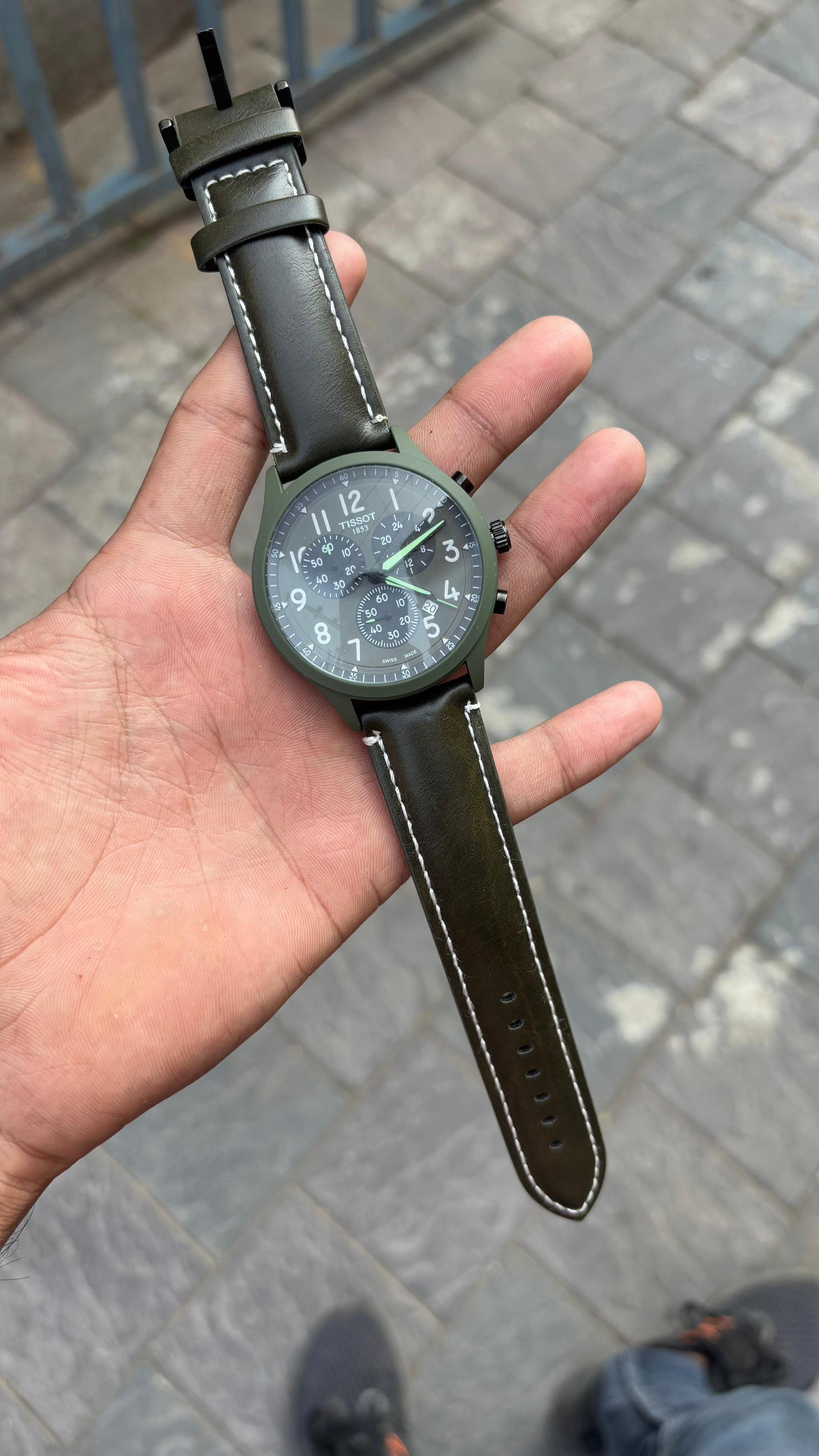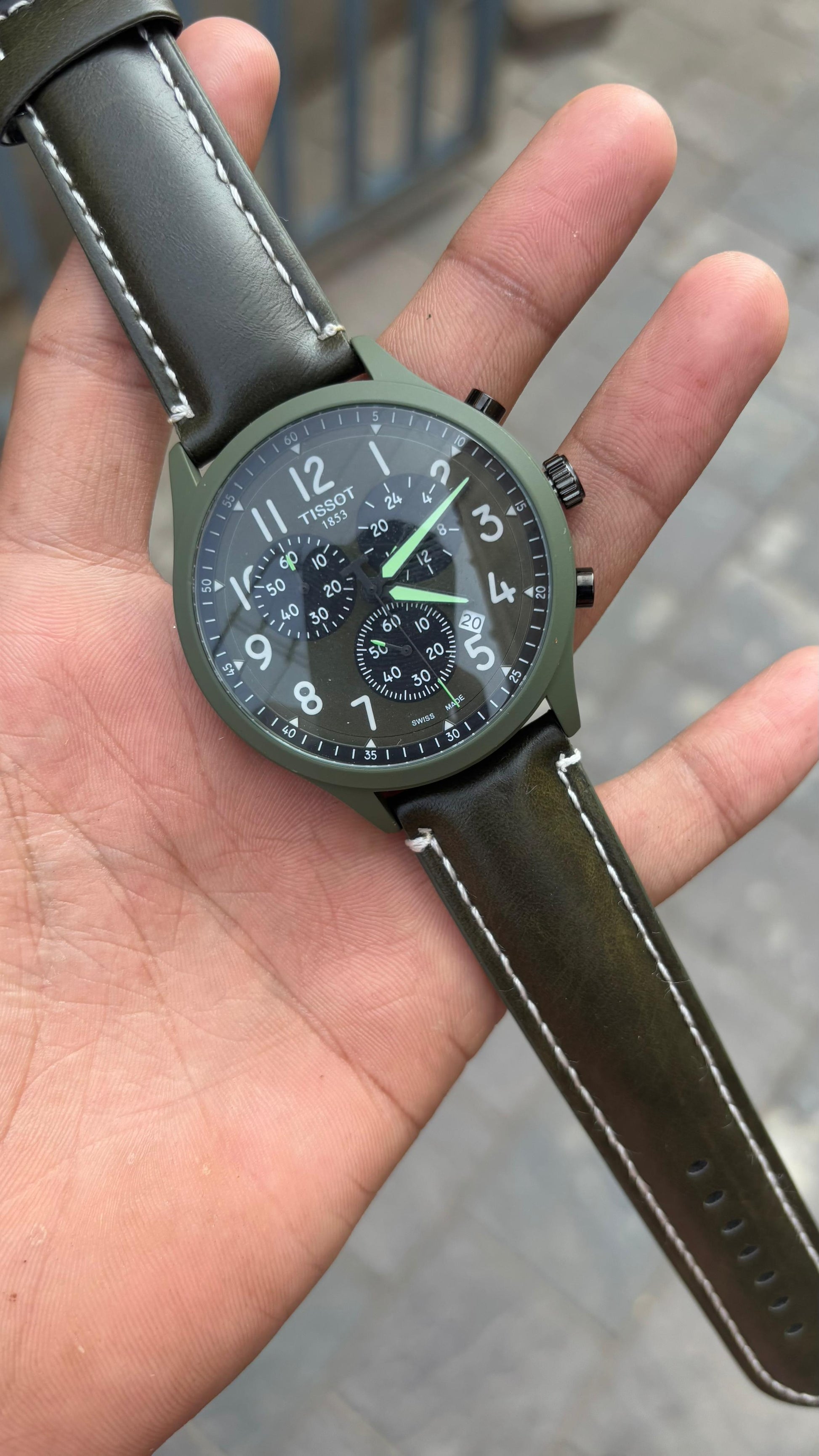 Tissot Green Dial Chronograph Leather Belt Watch For Men's